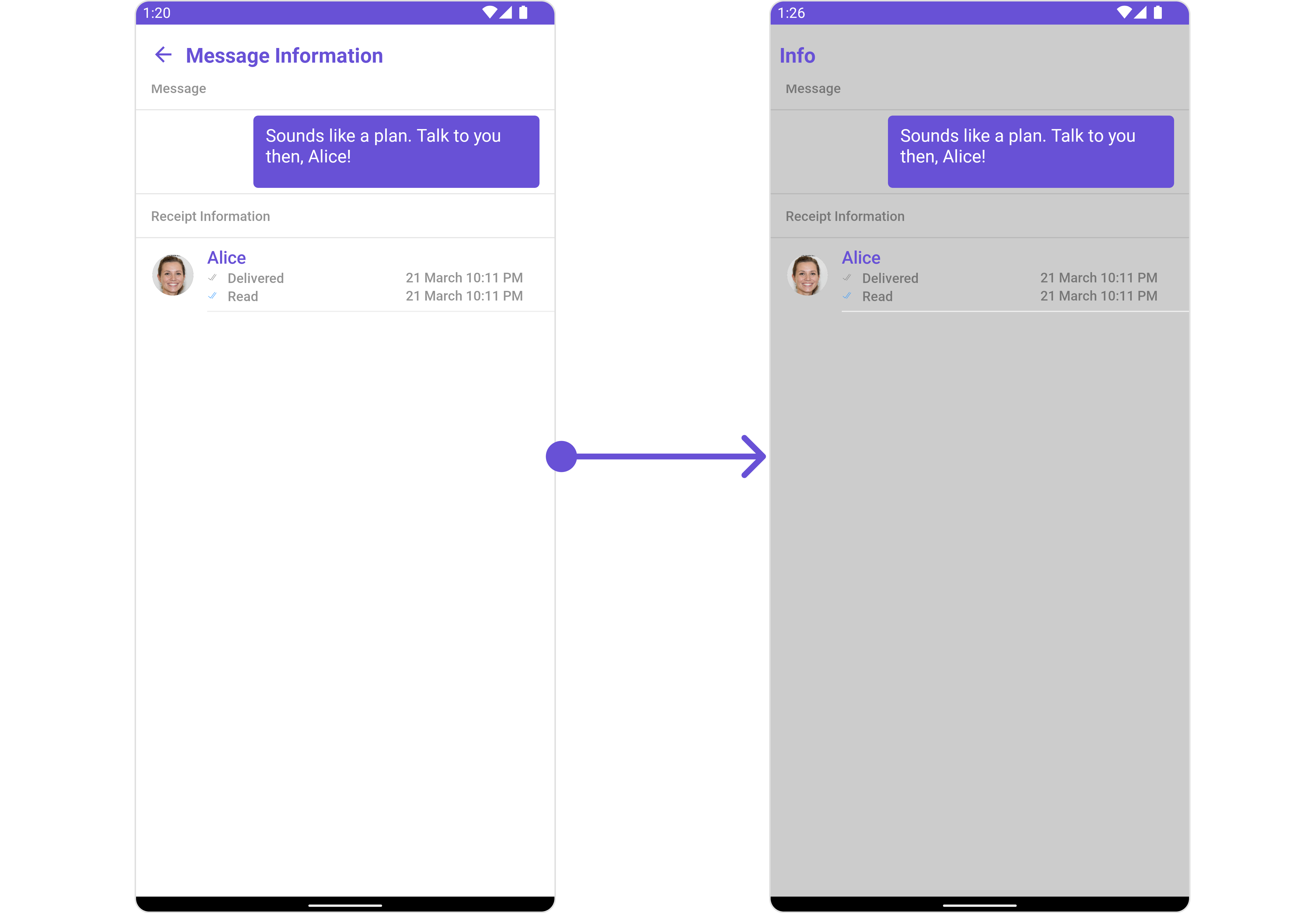 In the above code, the back button is disabled, the title is set to “Info”, and the background color is set to light gray. Finally, this configuration is applied to the message list.